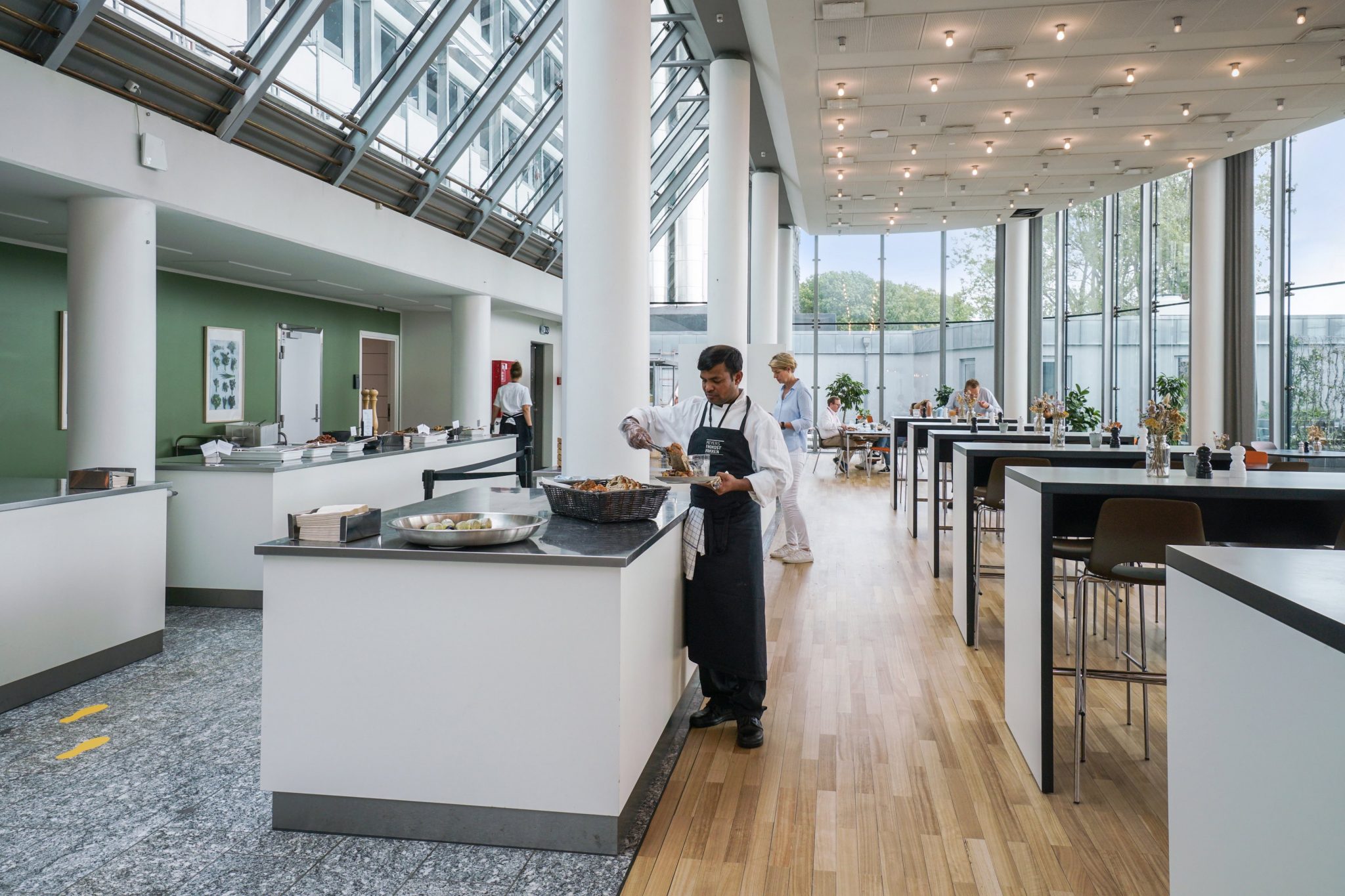Fællesfaciliteterne er placeret midt i ejendommens hjerte og inkluderer bl.a. reception, mødecenter, café i atrium, terrasse, badefaciliteter og kantineordning. Mødecenteret kan anvendes til interne møder, undervisning og konferencer. Det er muligt at bestille forplejning fra Meyers i mødecenteret.